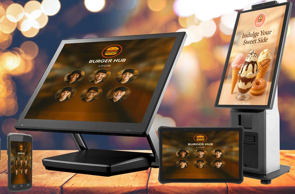 Customer-facing ordering stations that reduce queues and increase average order value.